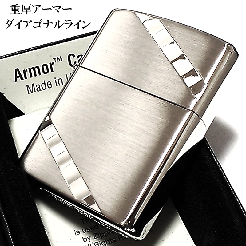 特価品 Zippo アーマー ダイアゴナルライン サテン ジッポ ライター シンプル 両面加工 彫刻 シルバー かっこいい 銀 重厚 おしゃれ メンズ ギフト プレゼント