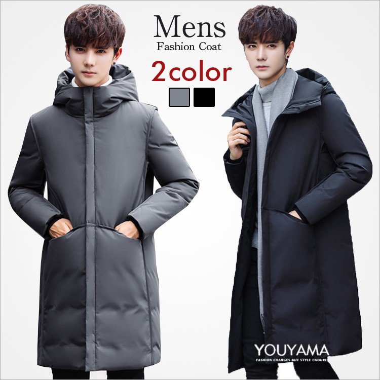 ダウンジャケット メンズ 軽量 ダウンコート ロング丈 冬物 冬服 アウター 黒 おしゃれ 細身 フード付き 防寒 激安 彼氏 男性 ロングコート 無地 Y Mooti 通販 Yahoo ショッピング
